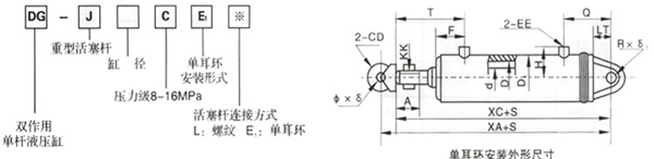 DG型车辆用液压缸是双作用单活塞杆、耳环安装型液压缸,主要用于车辆运输机械及矿山机械等的液压传动。